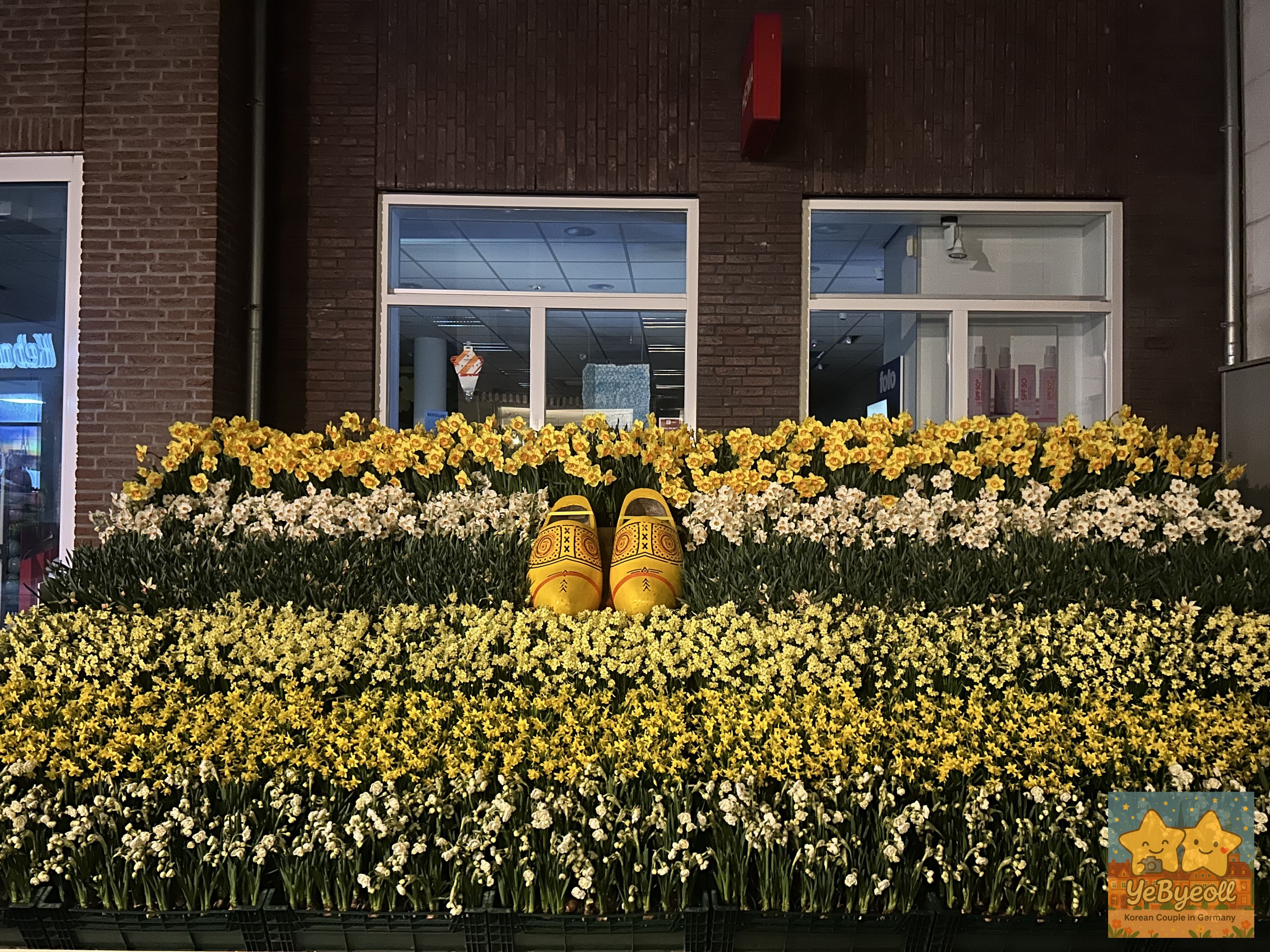 이렇게 네덜란드 나막신과 꽃들이 가게 앞쪽에도 장식되어있는 것이 예뻤다.