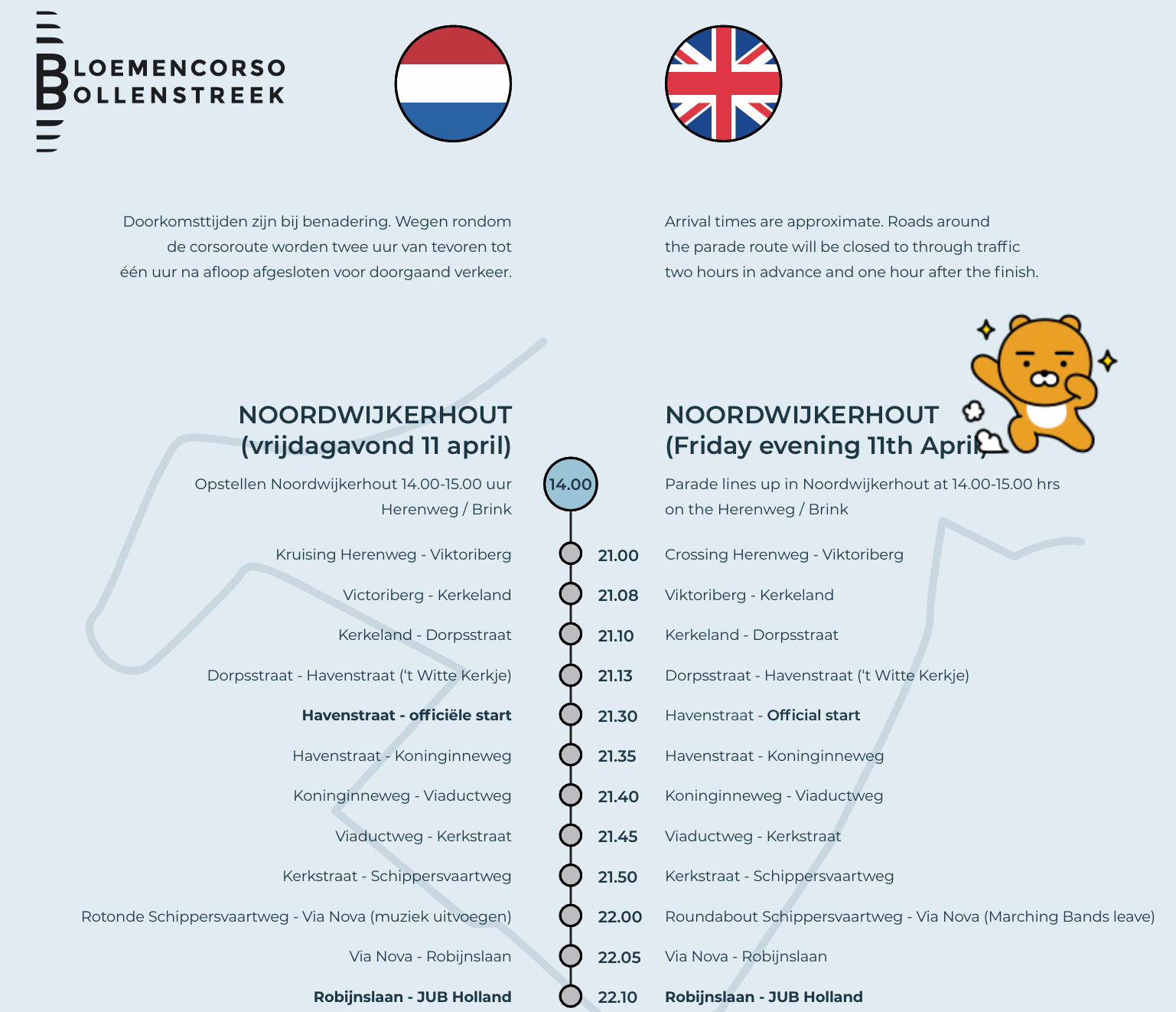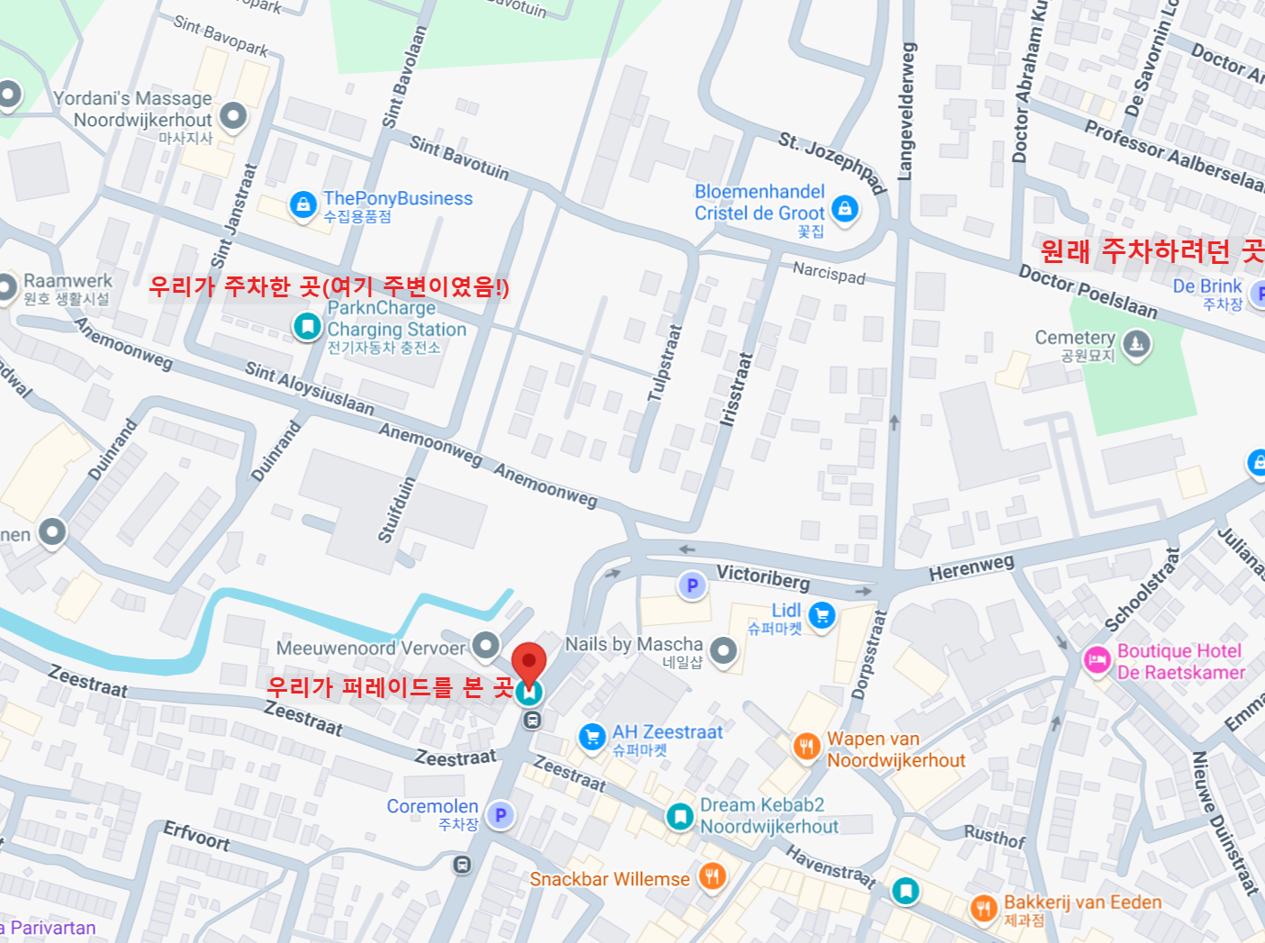 - 방문 방법: 자차 이용(Noordwijkerhout 길가 주차-corso 꽃퍼레이드기간 주차허용?)