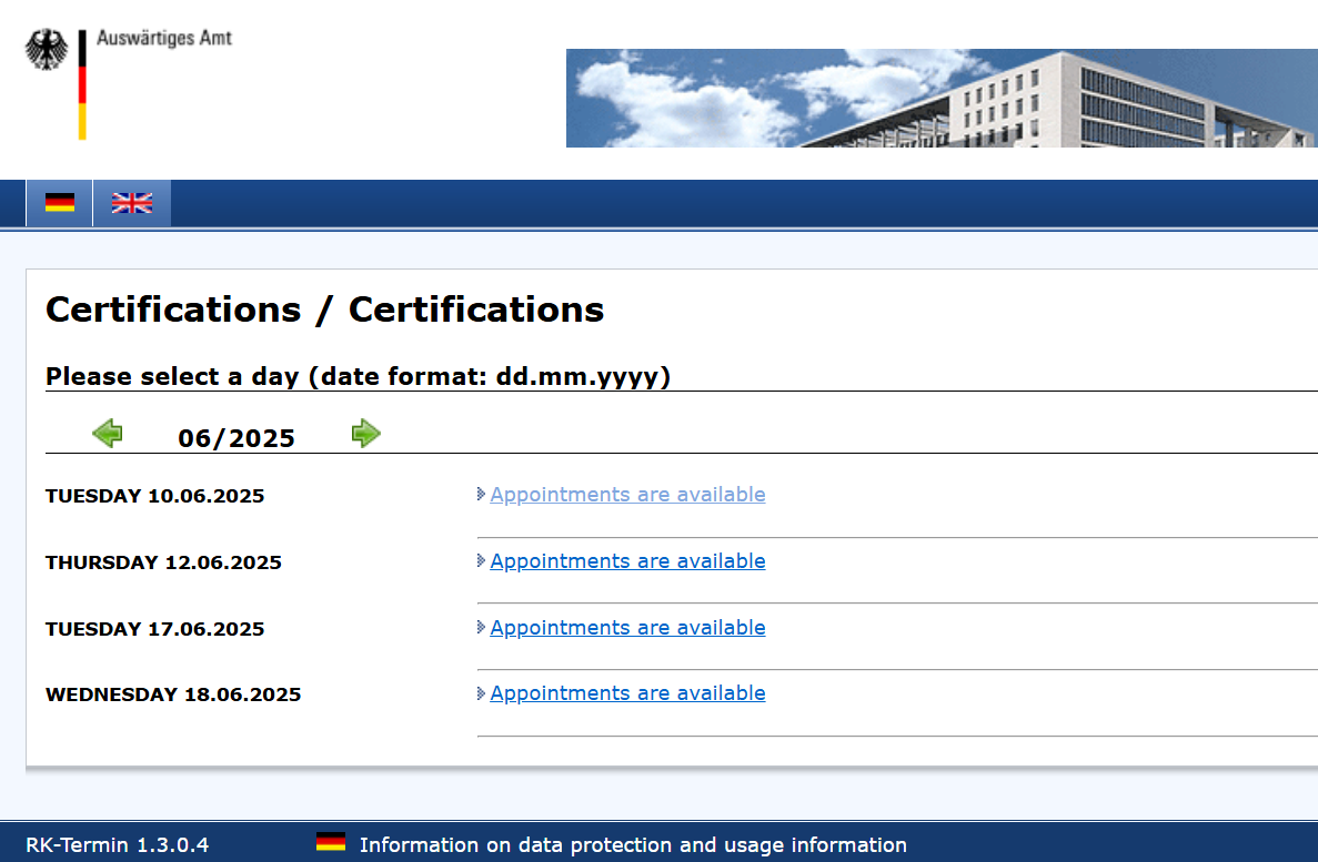 여기 주한독일대사관의 번역공증 예약부터가 입독과정 테어민 지옥의 시작으로 보인다..^^