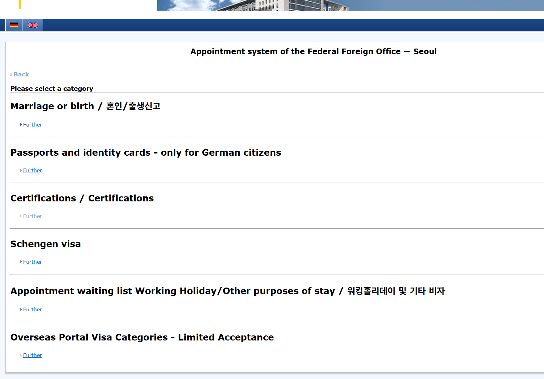 **주한독일대사관 예약시스템 링크: