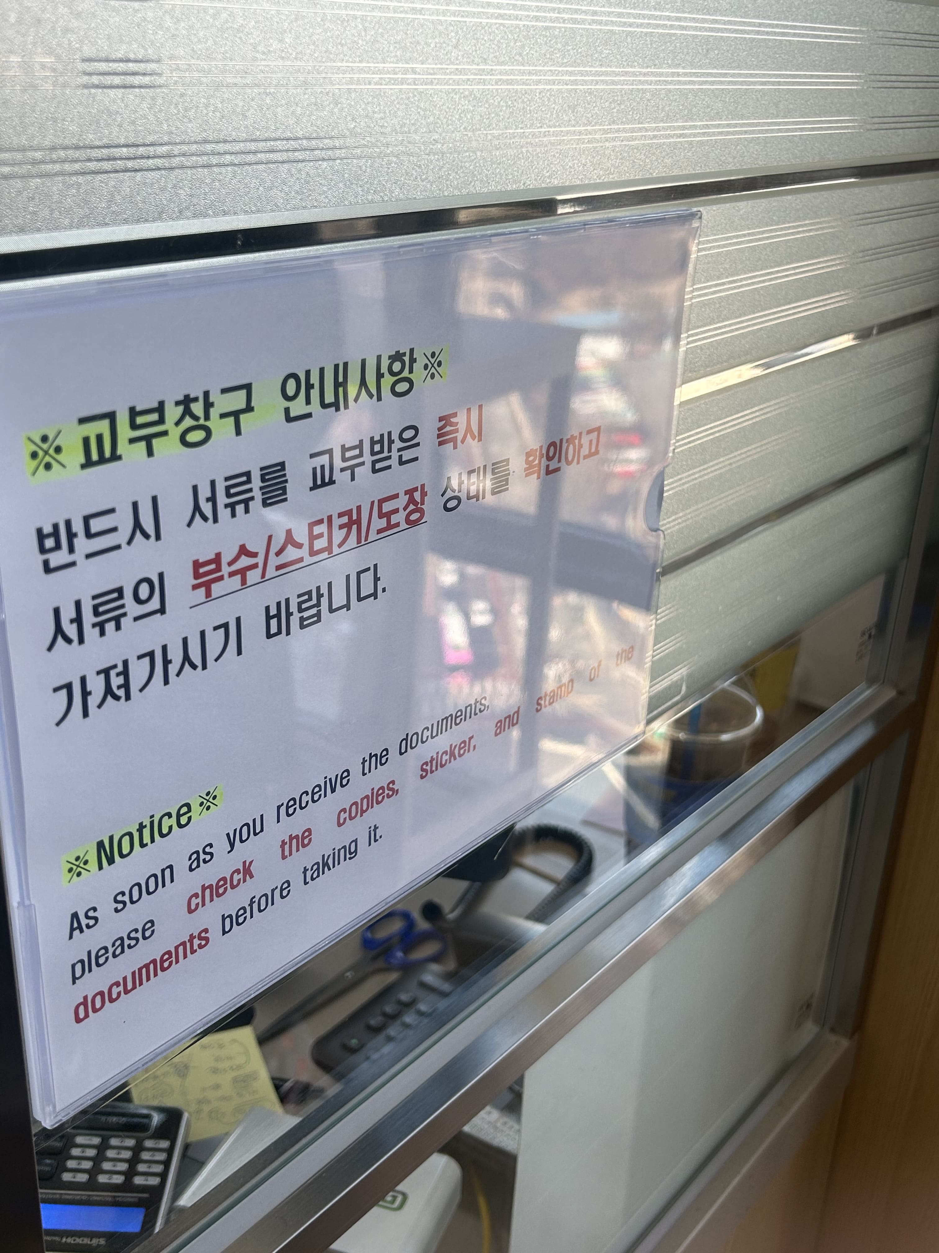 내 서류에 스티커/도장/부수가 다 맞게 되어있는지 현장에서 확인하고 떠났다.