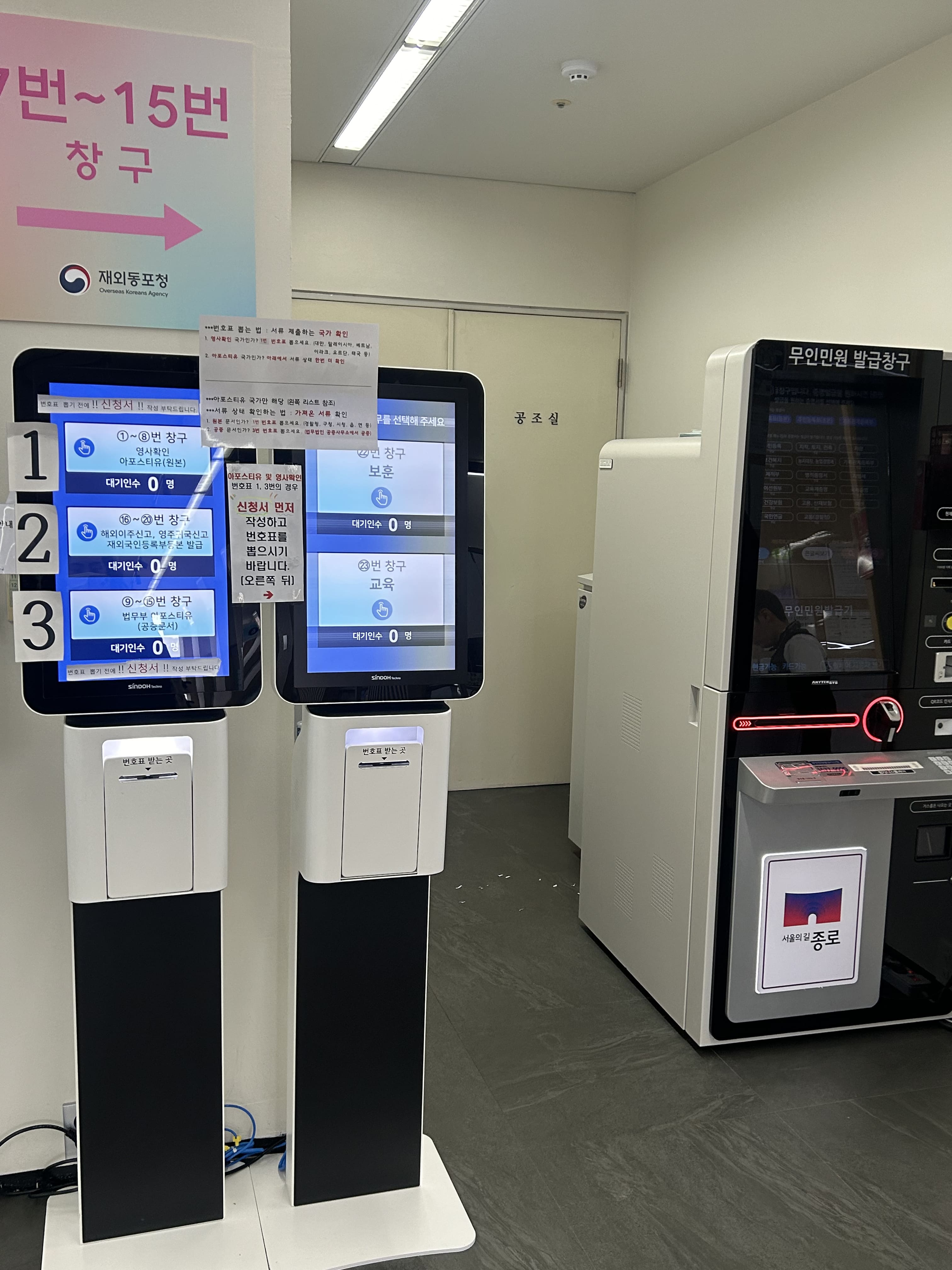 +)서류를 발급받아 오지 못했다면, 여기 번호표창구 옆에 무인민원발급창구도 있다.