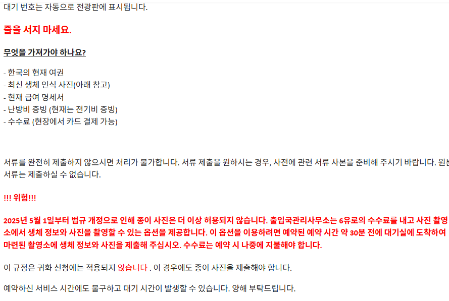 - 25.5월부터 새롭게 도입된것: 바이오매트릭 증명사진!