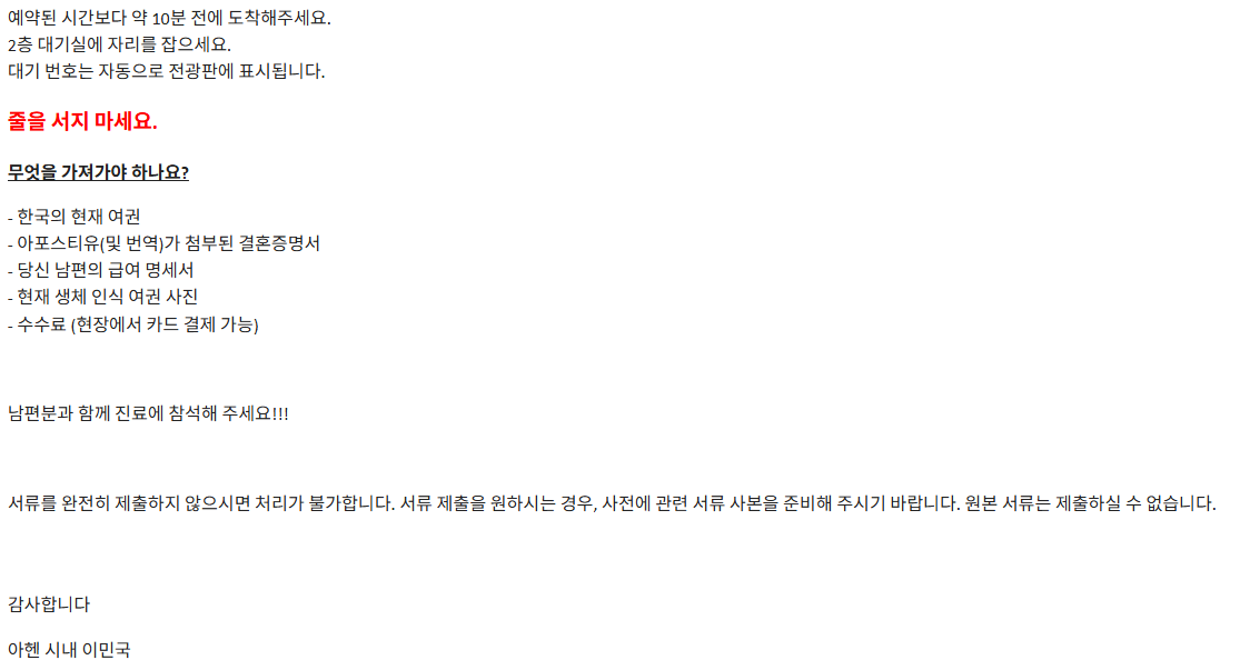 아, 그리고 동반비자이기 때문에 꼭 메인비자 소유자인 남편과 함께 같이 가야한다.