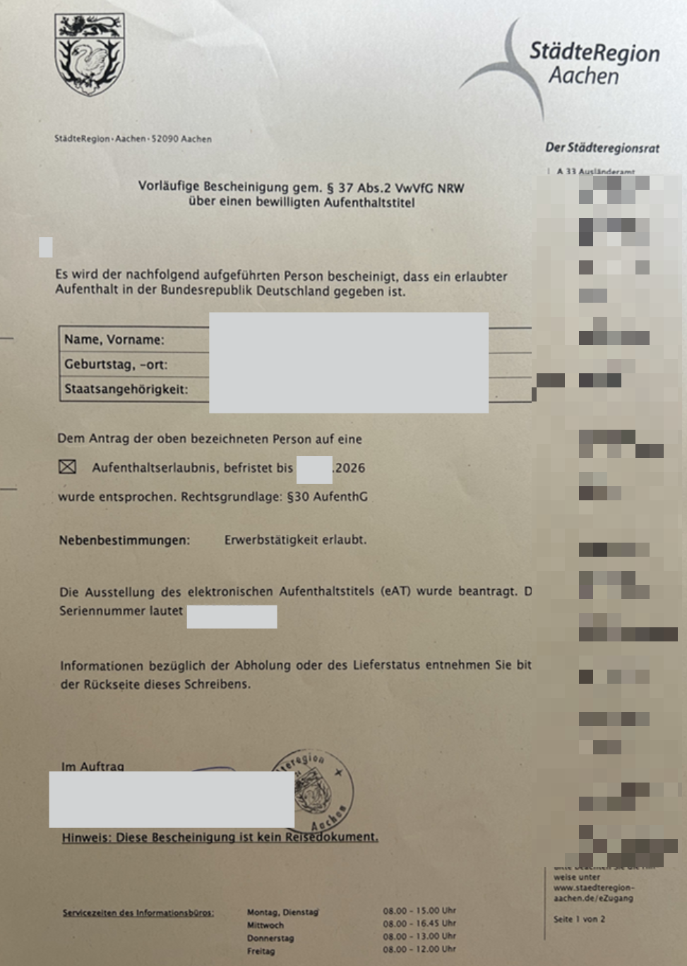 나는 아헨 거주중이라 아헨 외국인청에서 해야했다.