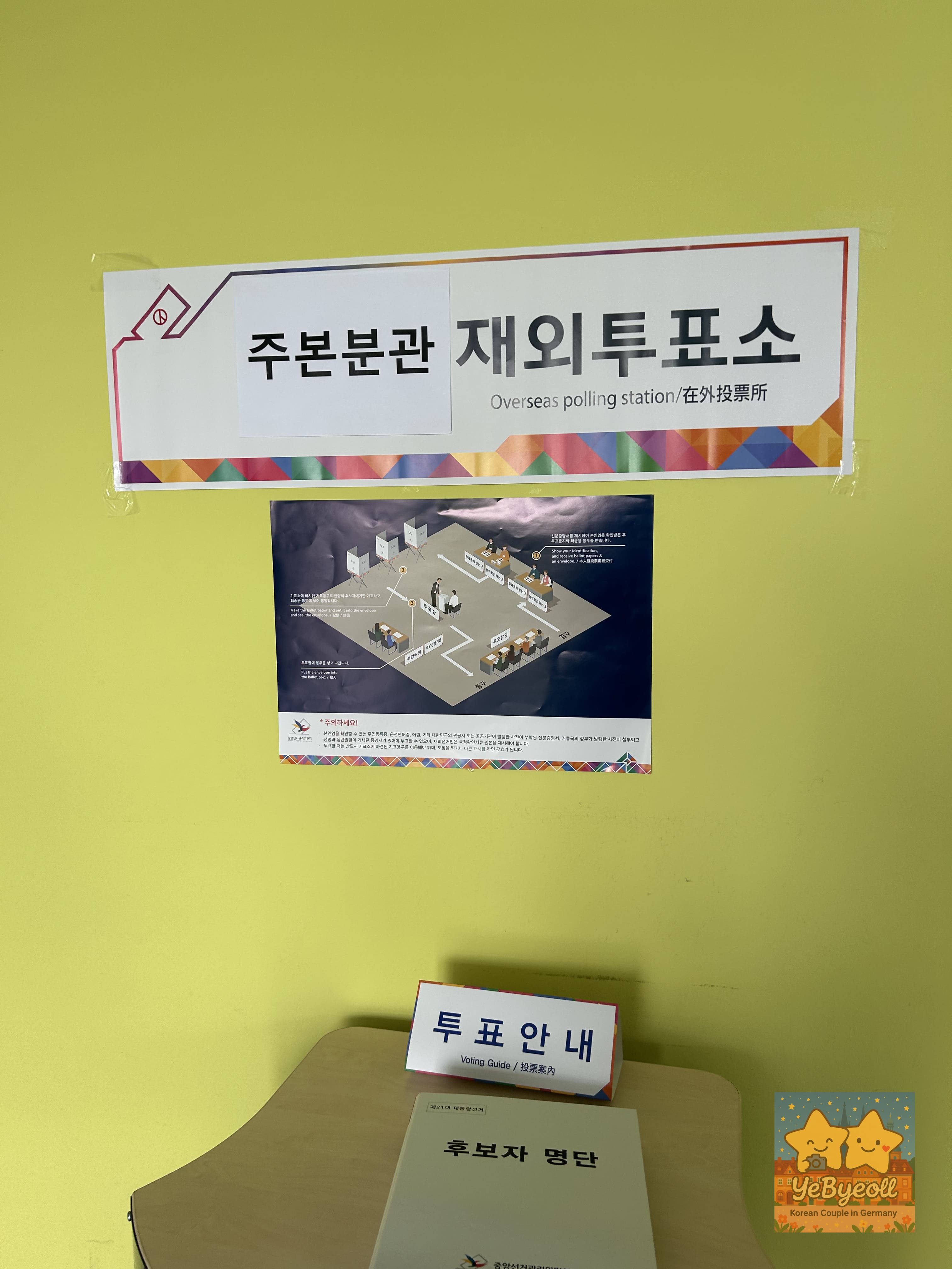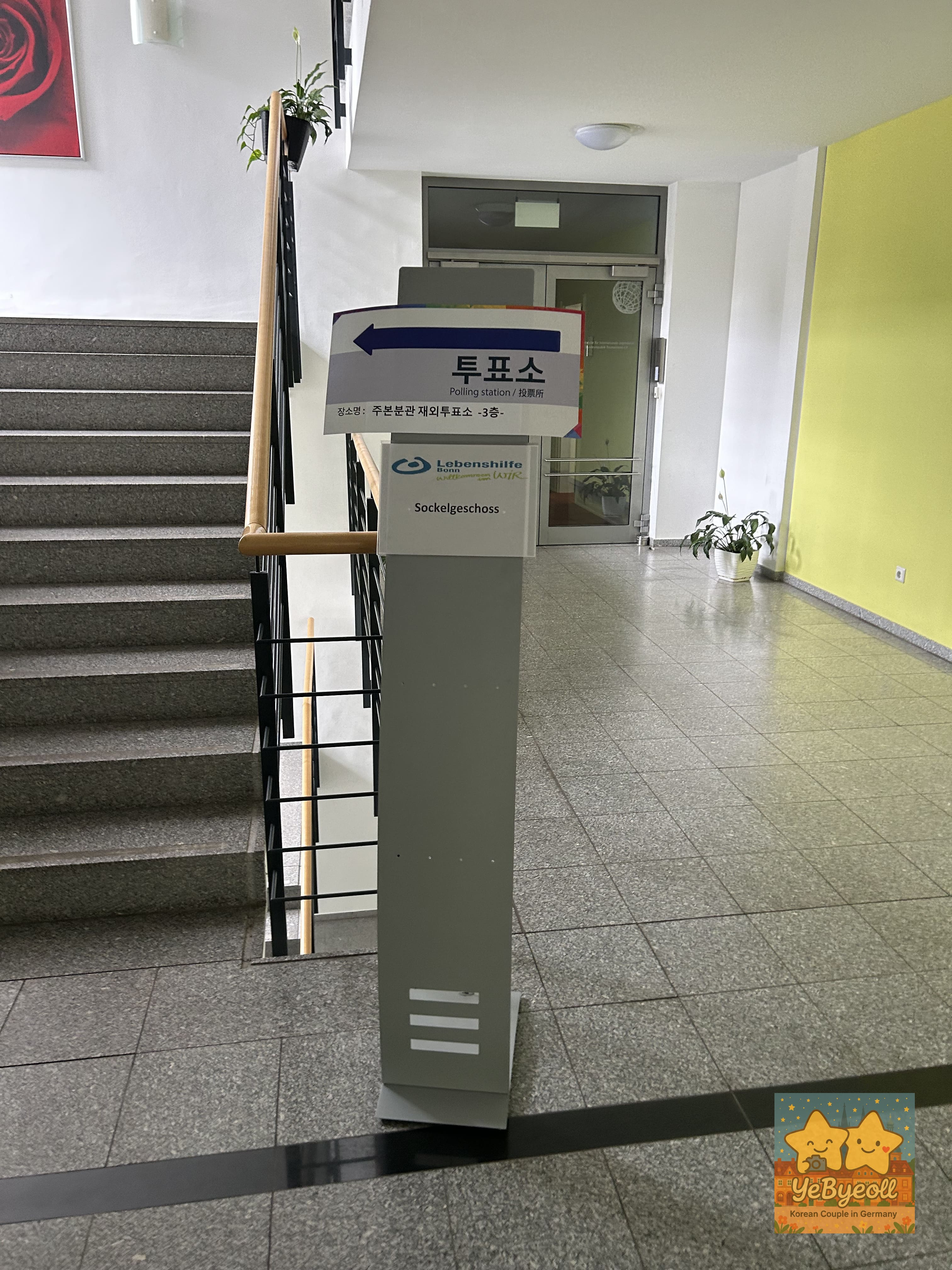 주독일한국대사관 주본분관에 들어가자마자 1층에 투표소 안내가있어서, 그걸 따라가니 재외투표소는 찾기 쉬웠다.