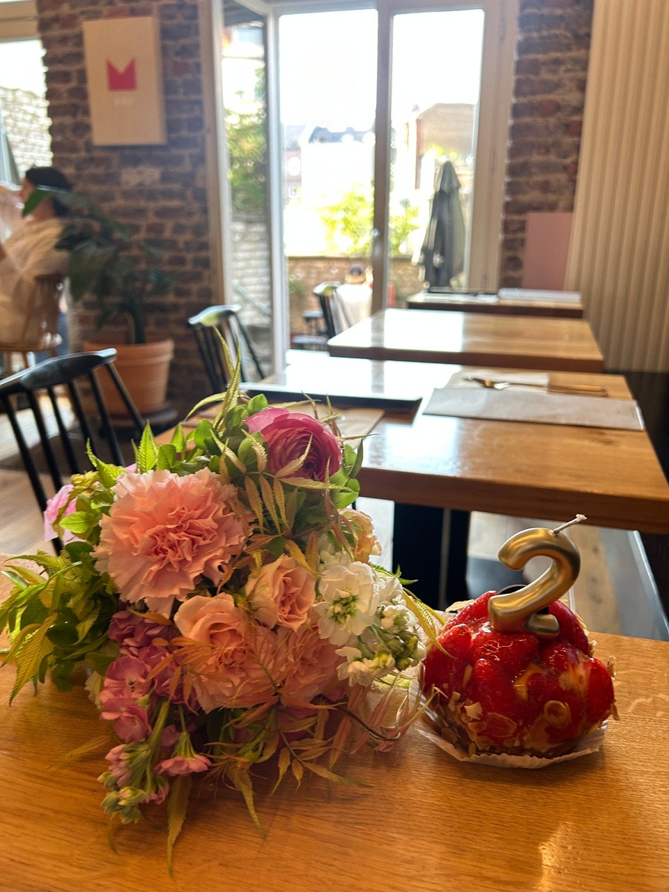 음식이 나오기전까지 오빠가 준비한 꽃다발과 미니케잌 사진을 찍었다.