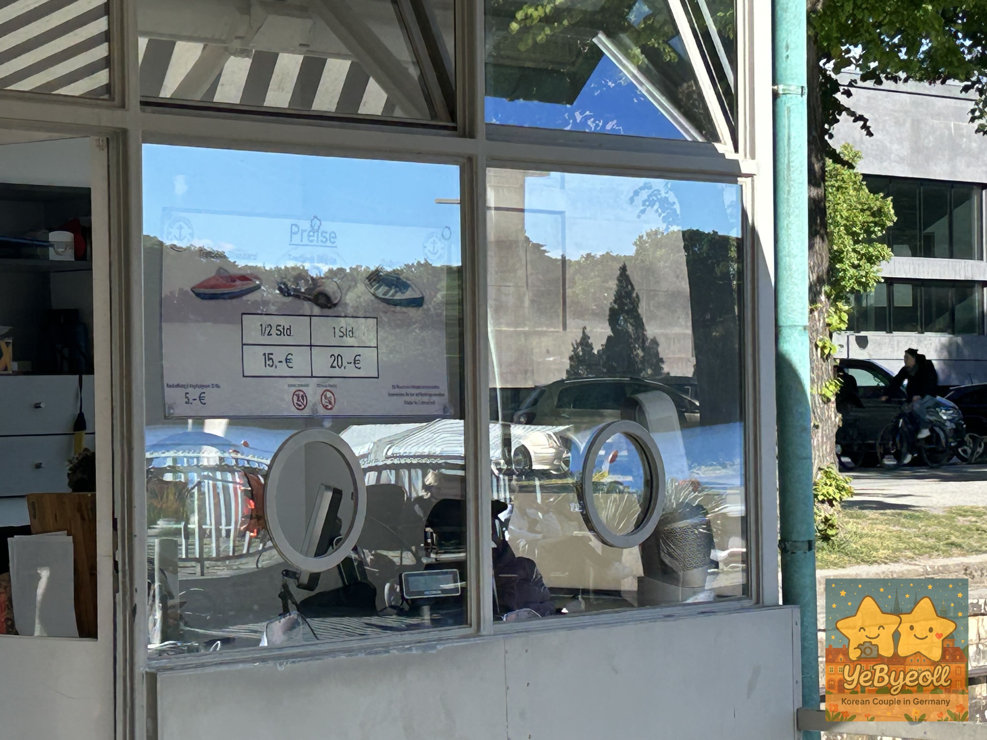 건너편에 패들보트를 빌리는 곳에 가서 보니까, 종류에 상관없이 30분에 15유로/1시간에 20유로였다.