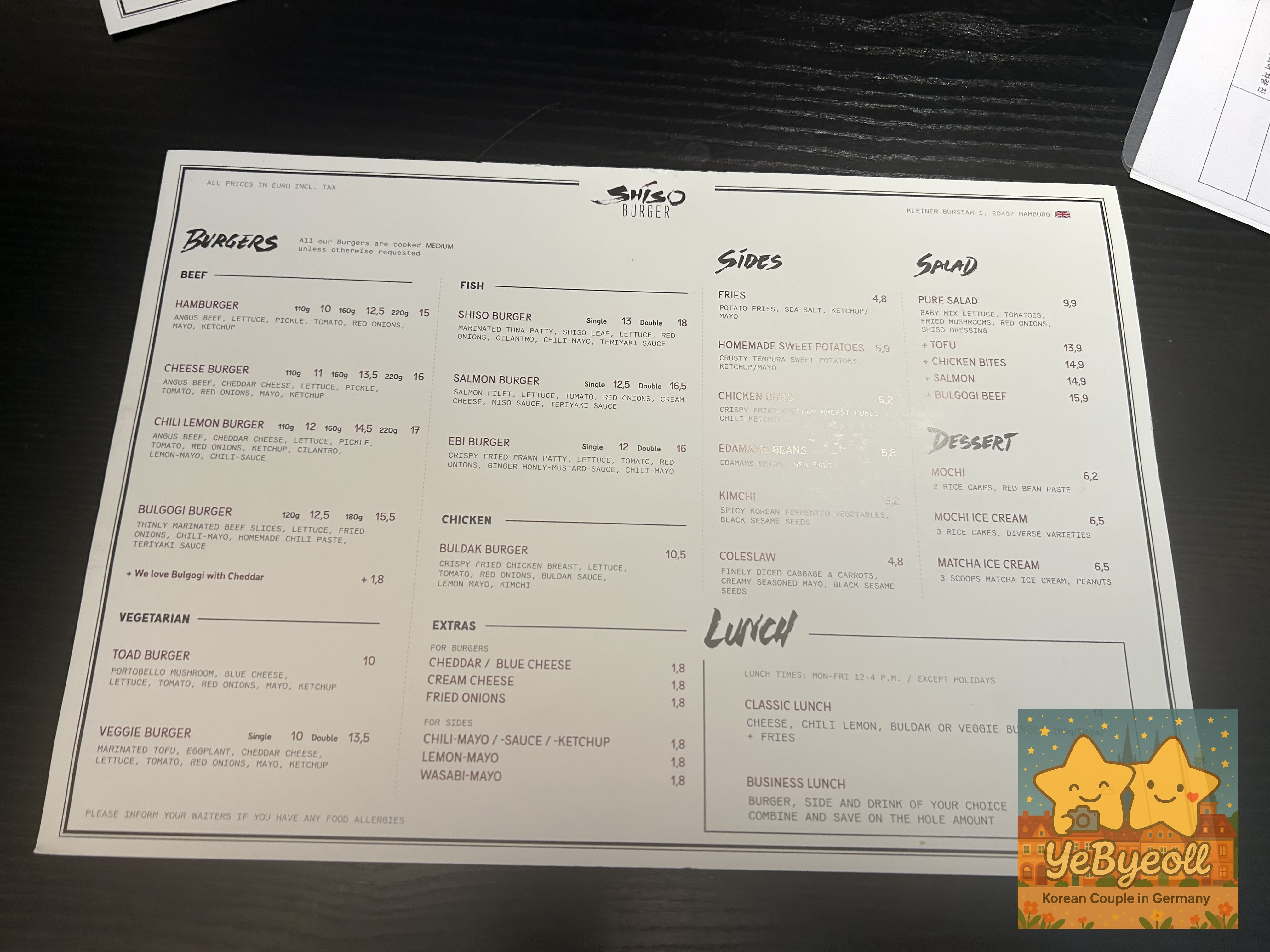 사실, 시소버거(SHISO BURGER)는 체인레스토랑이다. 2013년 베를린에서 시작되었고, 지금은 15개 이상의 지점을 운영하고 있다고 한다. 하지만.. 우리가 사는 독일 아헨주변에는 없기 때문에!!! 함부르크에 온김에 먹게되었다. 찾아보니까, 함부르크에는 SHISO BURGER가 두 지점이 있는듯하다. 역시 독일 인구 2위 함부르크!