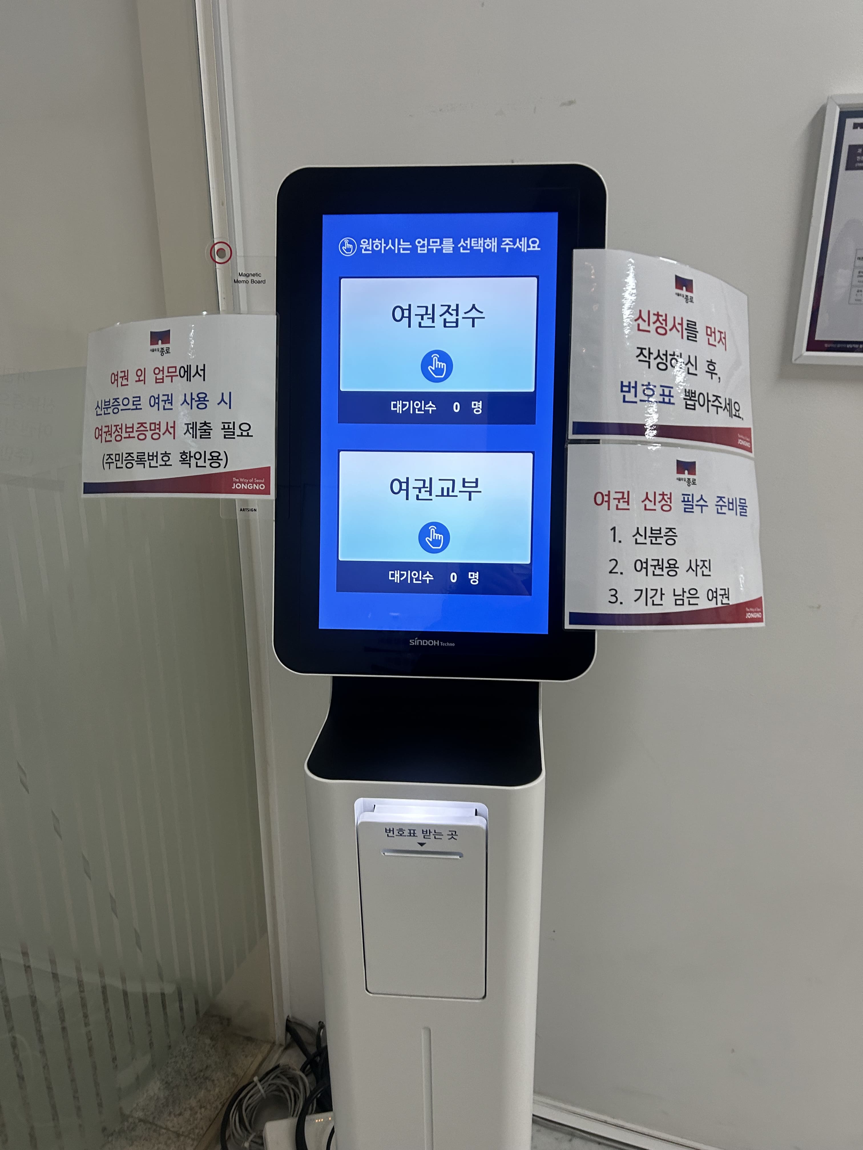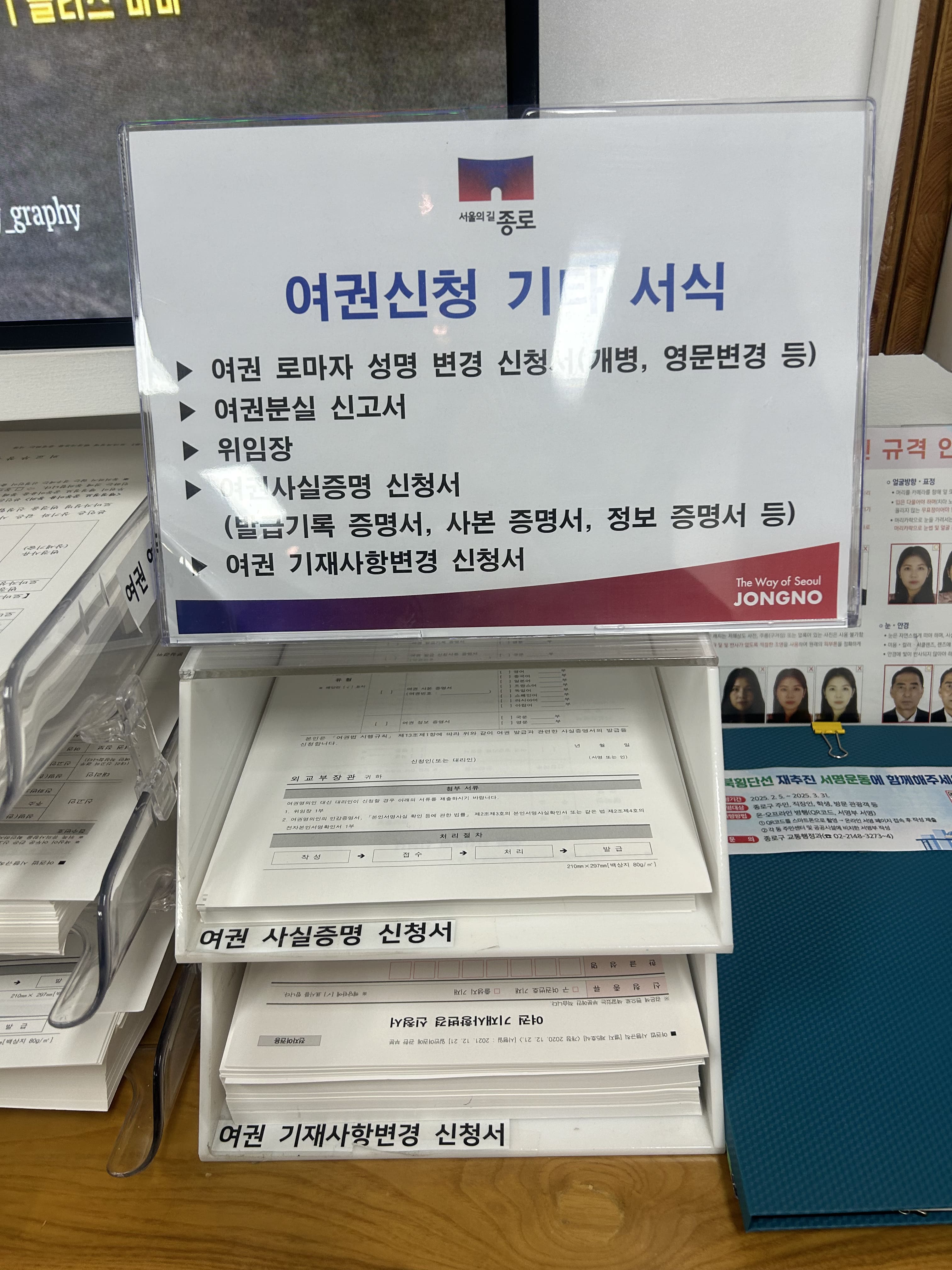 종로구청 여권과에는 이렇게 비치되어있었고, 내가 여쭤보니 익숙하신듯이 안내하셨다.