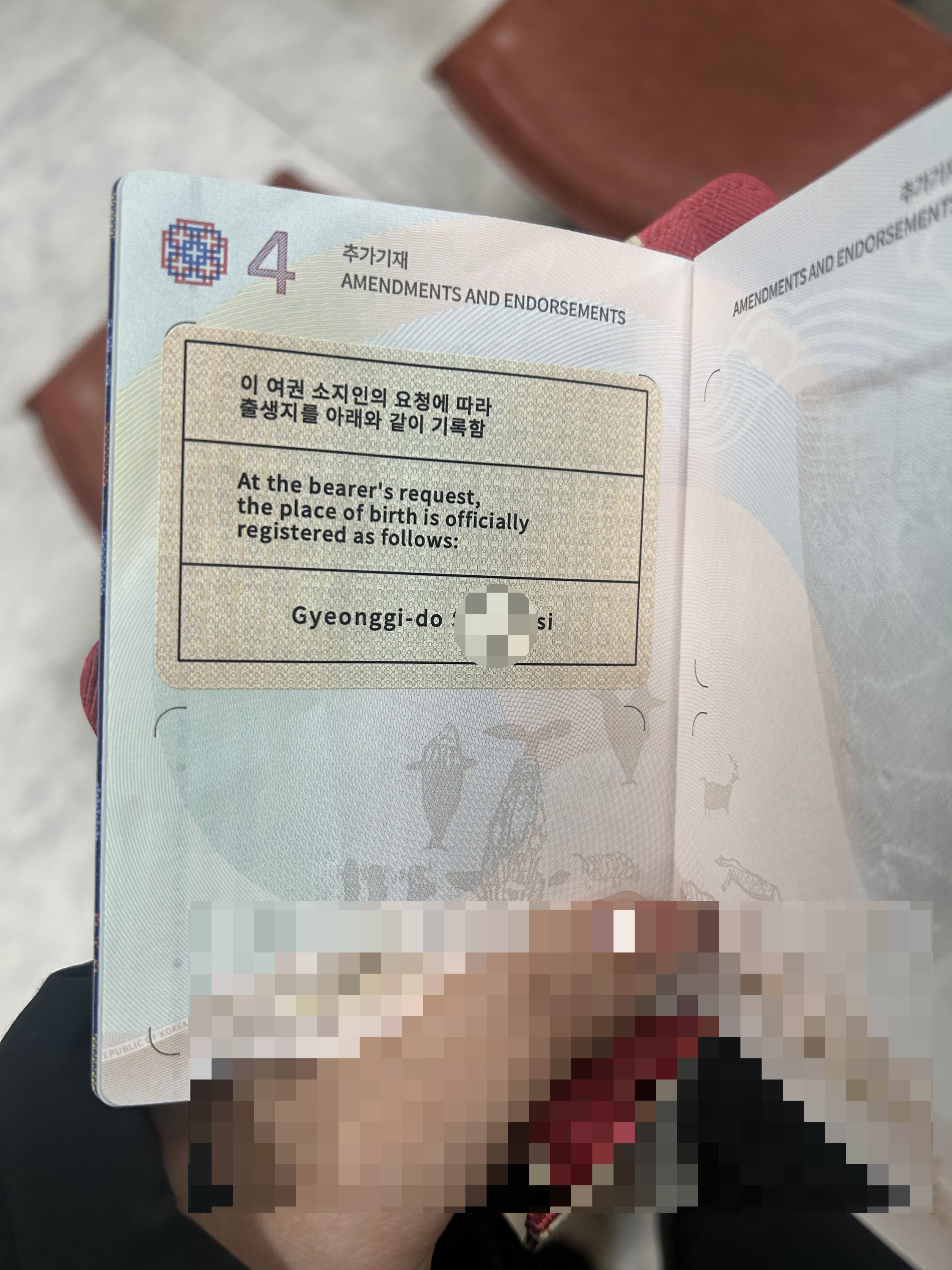 입독하기전, 먼저 입독해있던 남편이 나에게 꼭 여권에 '출생지 추가기재'를 하고 오라고했다.