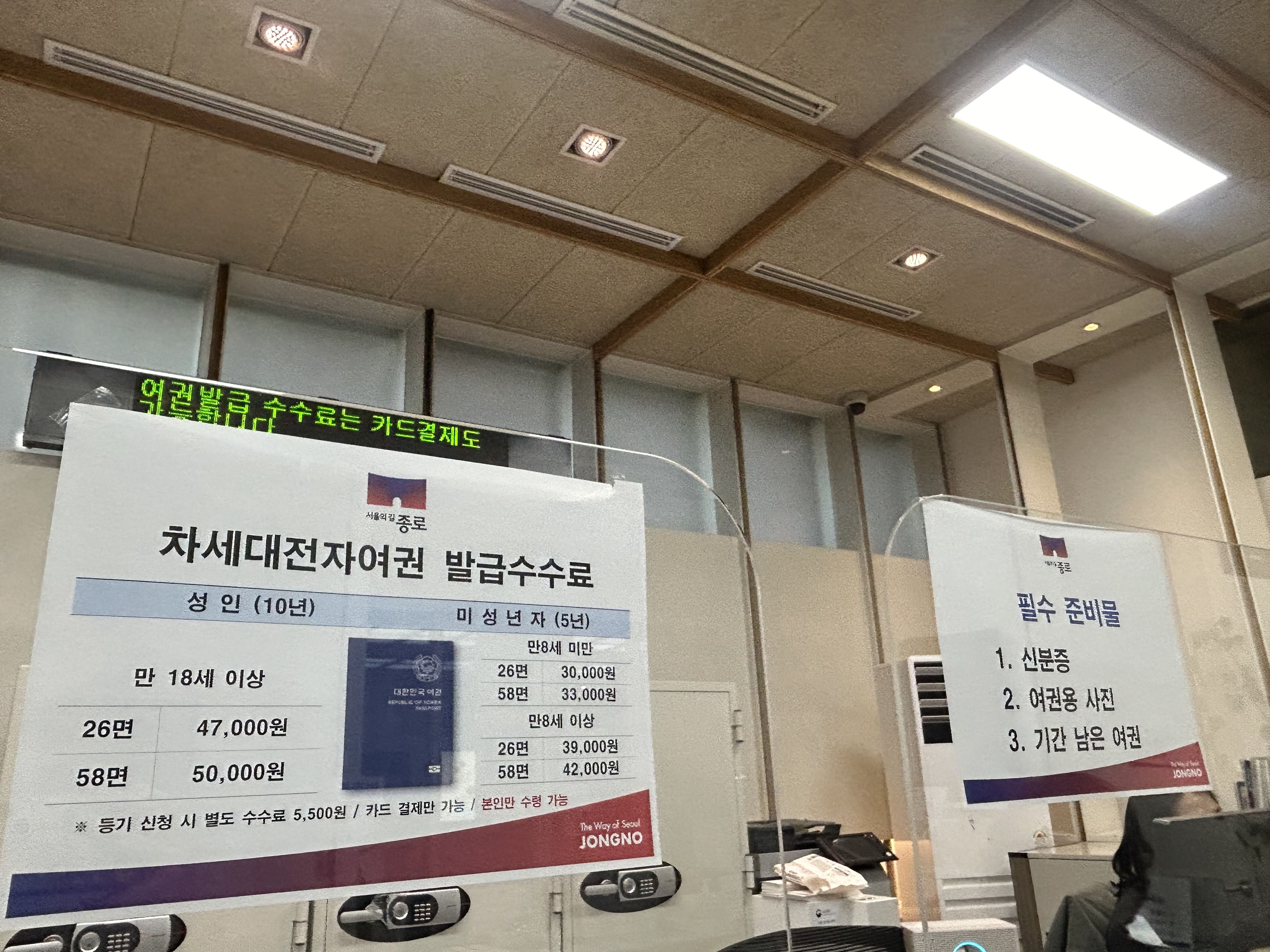 아, 대기하면서 보니까, 전자여권 발급수수료는