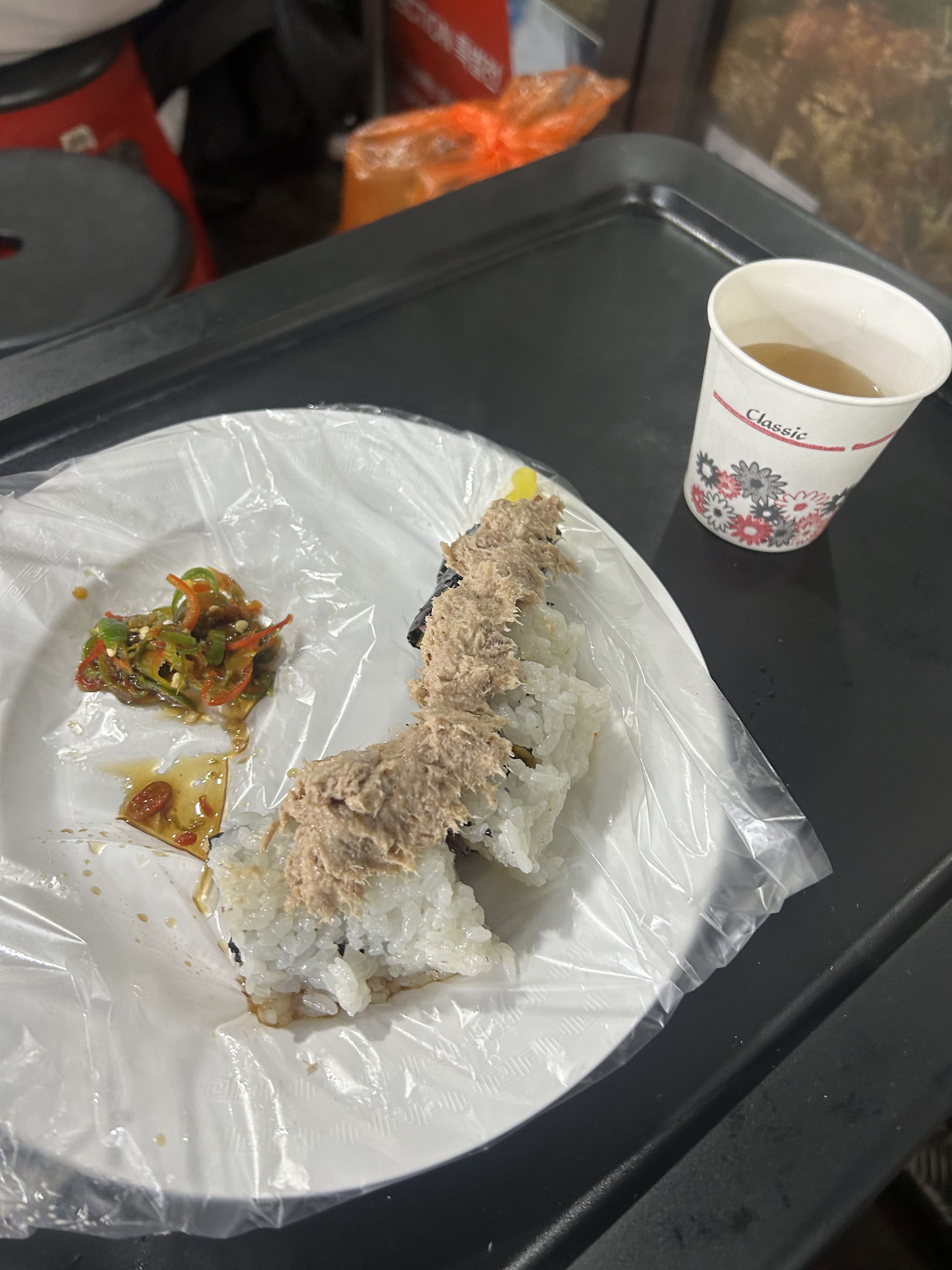 모든 사람들이 잡채김밥을 먹고있었지만, 배가 별로 고프지않아 치즈참치김밥을 시켰다.