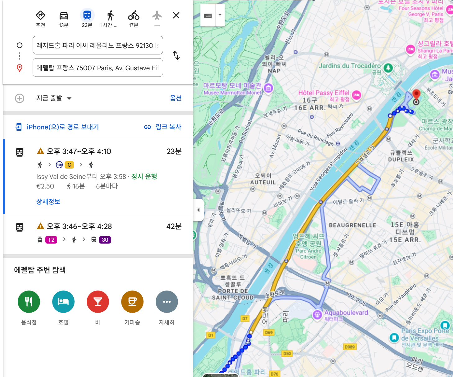 친구부부를 픽업하러 에펠탑쪽을 갔어야했는데 앞으로 쭉 직진만하면 되서 꽤나 좋은 위치였다.