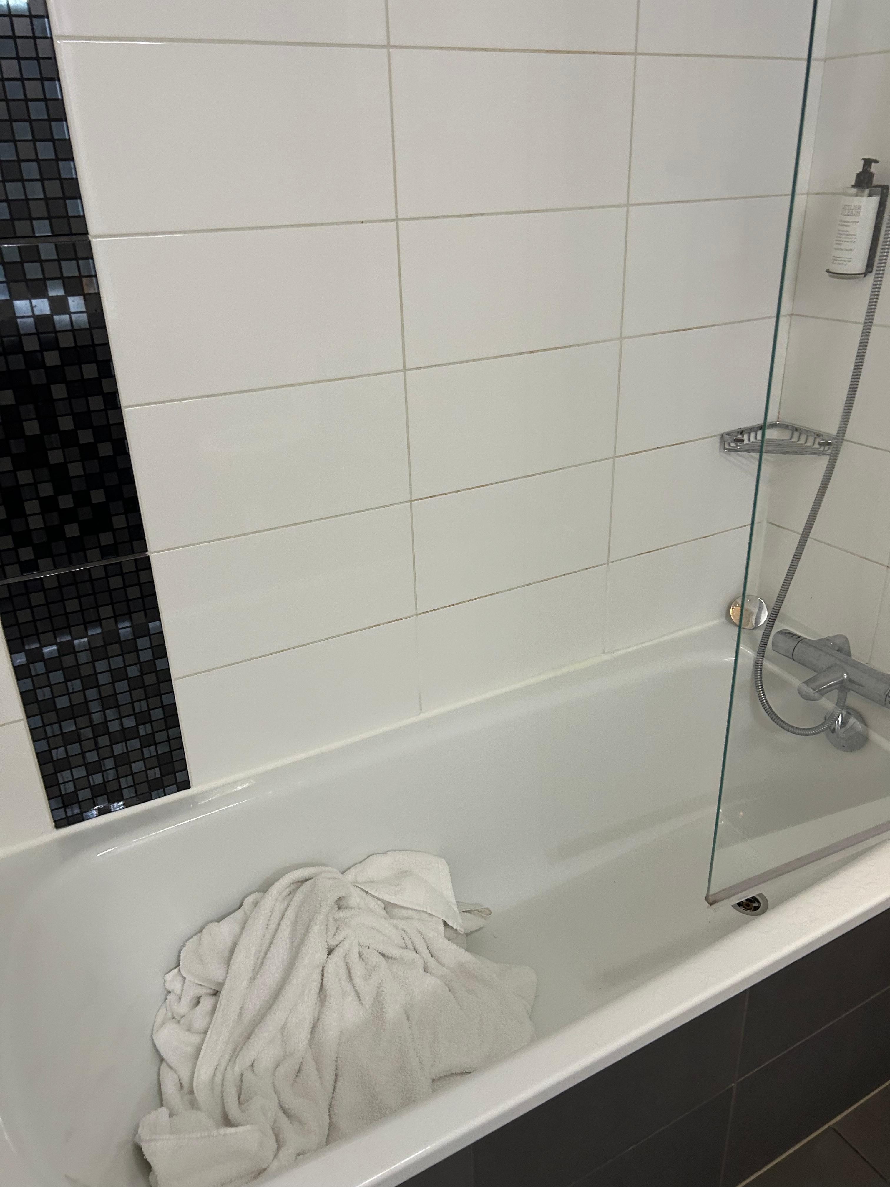 아, 타올이 욕조안에 있는 이유는, 욕조안에 타월을 던져야 새것으로 갈아준다!