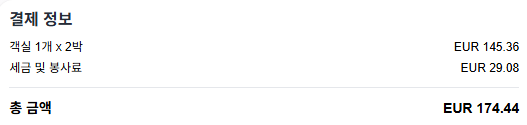 2박에 206.96유로를 총 지출한 셈! 솔직히 1박당 103유로 정도라, 이것도 파리 물가에 싼편인데, 좀 사기당한느낌이였다^^